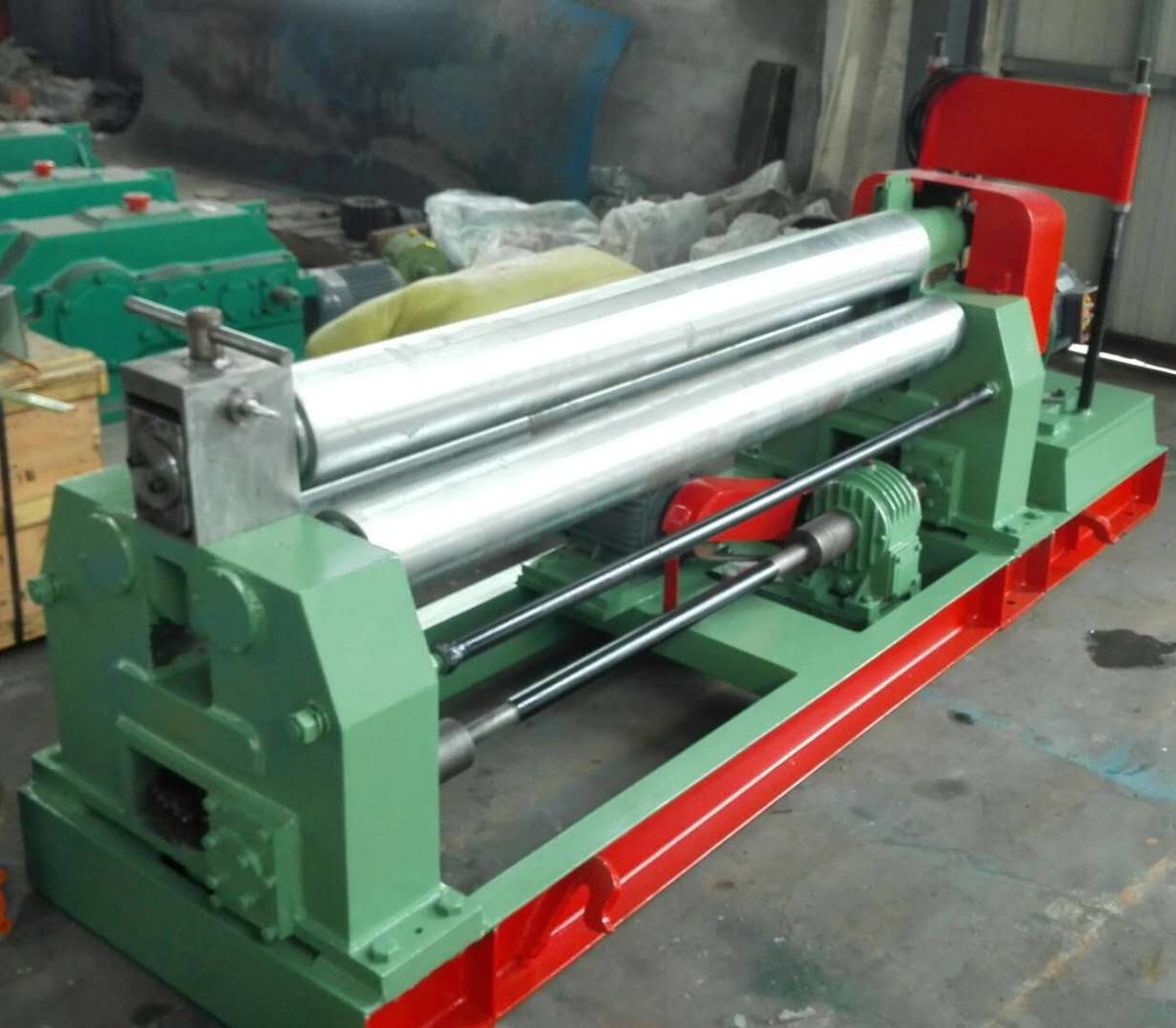三輥卷板機是利用三輥滾彎原理,使板材彎曲成圓形,圓錐形或弧形的設(shè)備。 三輥卷板機的特點是結(jié)構(gòu)簡單、緊湊,質(zhì)量輕、易于制造、維修、投資小、兩側(cè)輥可以做的很近。
