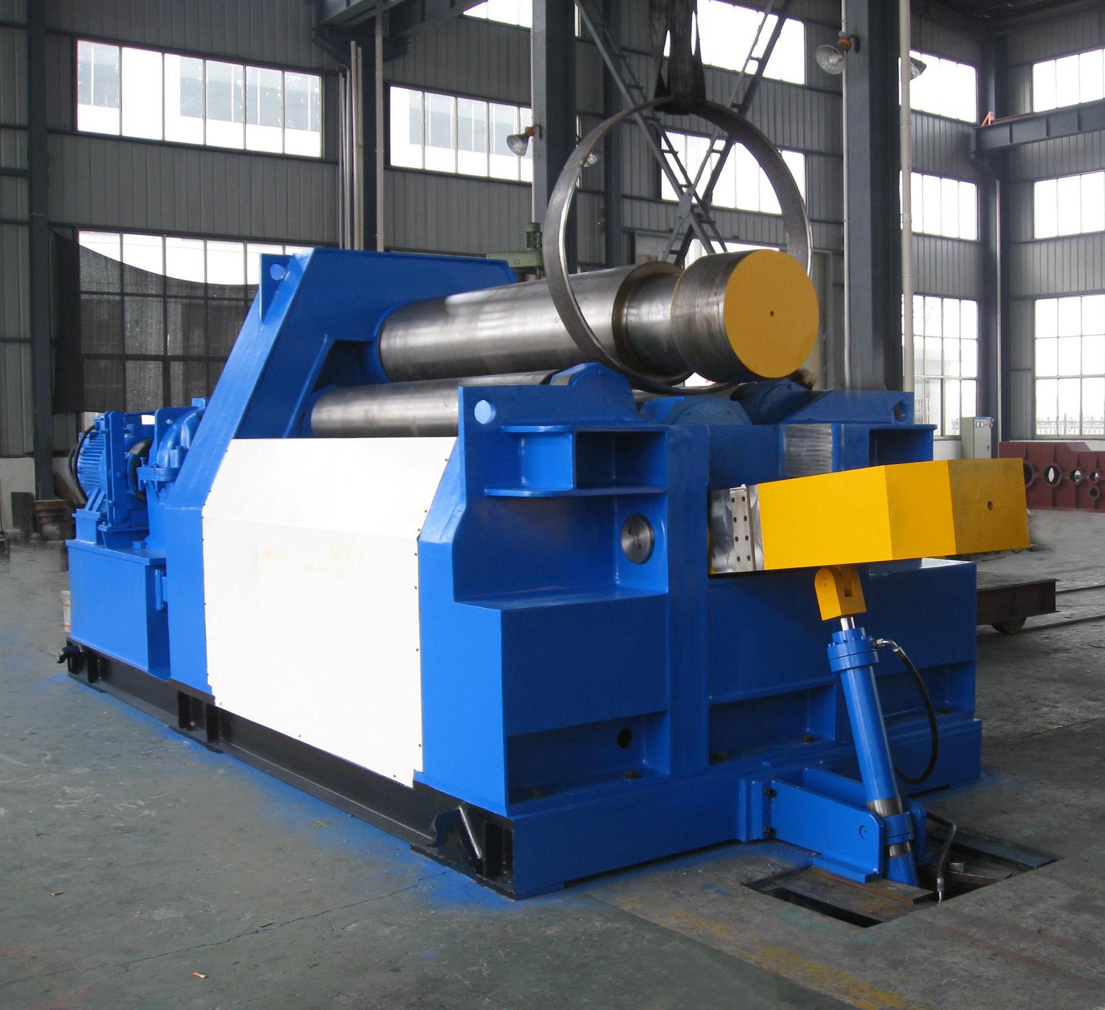 四輥卷板機可以不借助其它設(shè)備模具,直接預(yù)彎板材端部,它可以不要板材調(diào)頭,而卷成工件。這樣不僅提高了效率,保證了工件質(zhì)量,而且工藝簡單,操作方便,減輕工人的勞動強度。