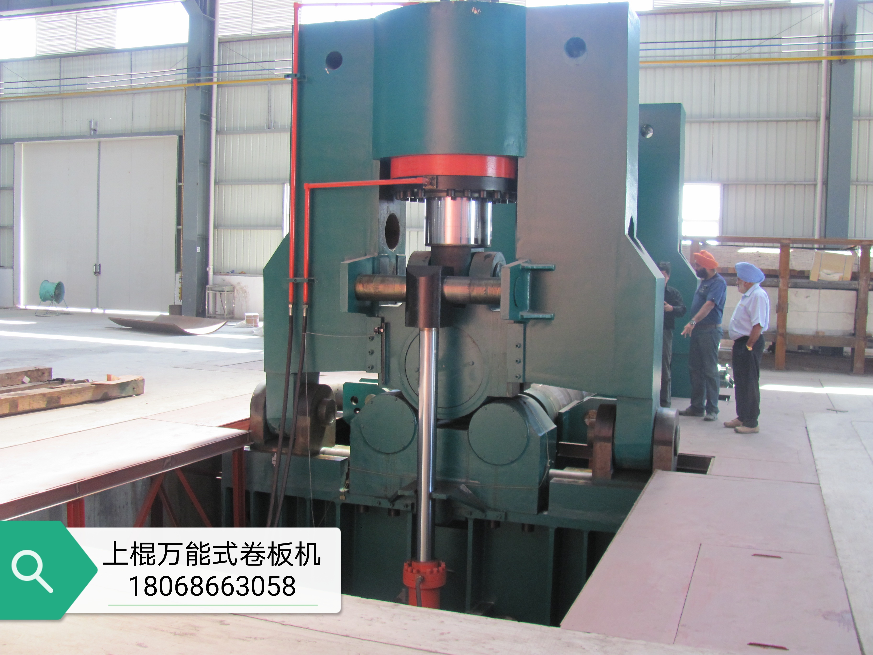 W11SNC萬能式三輥卷板機結(jié)構(gòu)型式為三輥對稱式,上輥在兩下輥中央對稱位置作垂直升降運動,通過絲桿絲母蝸桿傳動而獲得,兩下輥作旋轉(zhuǎn)運動,通過減速機的輸出齒輪與下輥齒輪嚙合,為卷制板材提供扭矩。