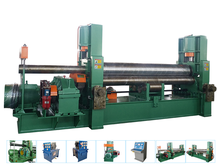 W11SNC萬能式三輥卷板機是一種雙夾板彎板機。 上輥為液壓驅動。 上輥可水平和垂直調節(jié),兩個下輥是固定的。 所有合金鋼輥均經(jīng)過感應淬火和熱處理。 經(jīng)過感應淬火處理后,所有的輥都將被研磨和拋光。